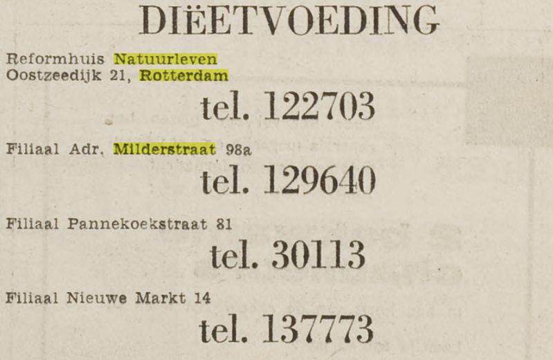 eig. H. Stolk Gr. Hilledijk 83 Oostzeedijk 21 Adr. Milderstraat 98a Pannekoekstraat 81 Nieuwe Markt 14 Rotterdam